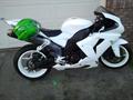 موتور سفید رنگ تتو شده فوق العاده تمیزه گاز خورش انصافا" وحشتناکه سری ZX کاواساکی واقعا" موتورهای وحشی هستش دنده 1 به شرط 175 تا میدم. مدل 2007 بدون زمین خوردگی و خط و