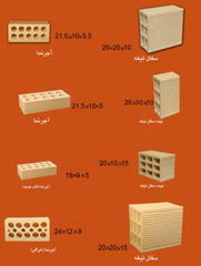 کارخانه آجر سفال کسری اشکذر تیغه: 10*20*20 همراه نیمه 10*10*20 در هر متر مربع تعداد 25 قالب. تیغه:22*20*10 همراه با نیمه 22*10*10 در هر متر مربع تعداد 22