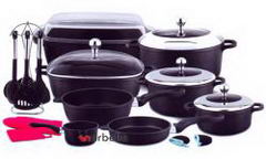 قابلمه با درب در اندازه های20/24/28+ تابه بدون درب در اندازه های 24 معمولی و 24 لبه بلند + ماهیتابه 4گوش 28دو دسته با درب + مرغ پز مستطیل32 با درب پیرکس و شیرجوش 16